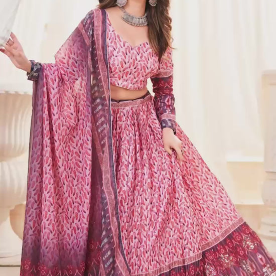 Ziyana β Crush Chinon Printed Lehenga with Mukesh Work