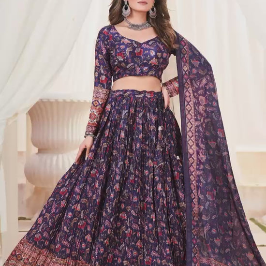 Step into effortless elegance with our Ziyana Crush Chinon Lehenga Collection.